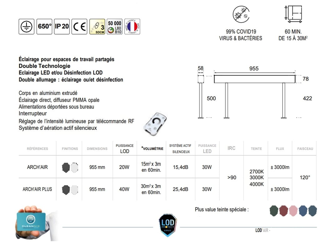 ARCH'AIR : Led: 20 W − Lod: 20 W − 15 M²